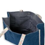 Mezginių krepšys KnitPro yra 40 cm pločio, 12 cm gylio ir 29 cm aukščio (57 cm su rankenomis).