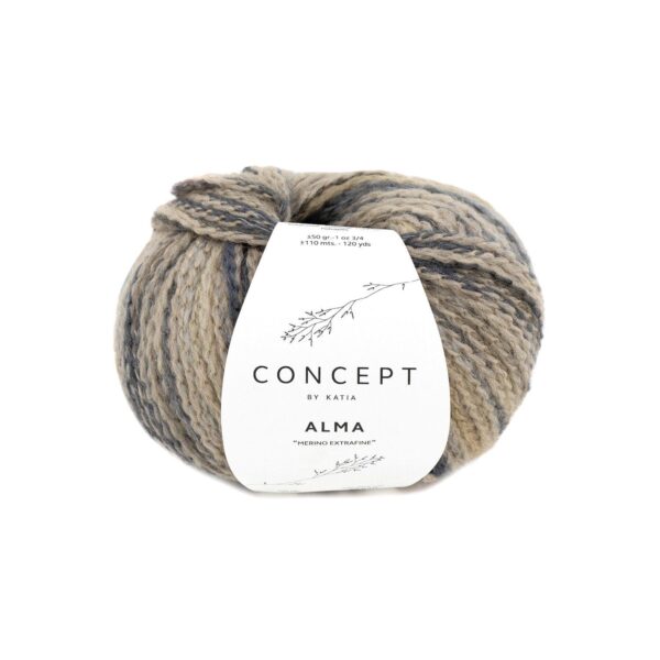 Alma is a spongy virgin wool yarn with an elegant chainette, or catanella, structure. Thanks to recent innovations, we have attained a yarn composed of one multicolour strand and one solid colour strand. Alma is a yarn with a spectacular yield and knits up quickly into all kinds of lightweight, warm and consistent garments.